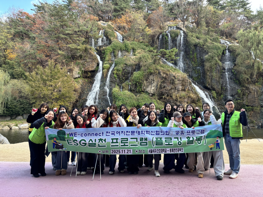 지난 2025년 11월 21일, 「WE-connect 전국여자전문대학혁신협의회」가 진행한 ‘2025학년도 7개 여대 연합 그린캠퍼스 플로깅’ 행사가 성황리에 마무리됐다. 이번 행사에는 서울여자간호대학교(총장 김숙영), 수원여자대학교(총장 이난경), 숭의여자대학교(총장 박경호), 한양여자대학교(총장 나세리)가 참여했으며, 서울여자간호대학교에서 출발해 홍제천인공폭포까지 이어지는 구간에서 플로깅 활동이 실시되었다.
